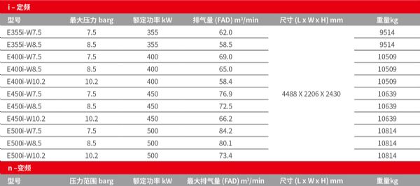 產(chǎn)品名稱:E系列355-500kW無油螺桿式壓縮空氣系統(tǒng)壓力:4-10.2bar功率:355-500kw排氣量:58.4-84.2m3/min品牌:英格索蘭