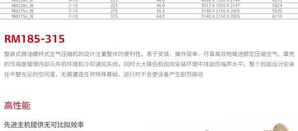 產(chǎn)品名稱:RM系列185-315 kW微油螺桿式空氣縮系統(tǒng)壓力:7-10bar功率:185-315kw排氣量:32.4-64.0m3/min品牌:英格索蘭