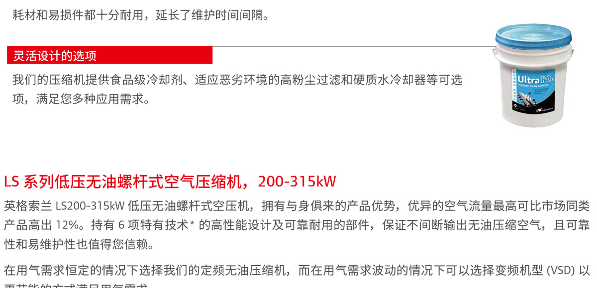 產品名稱:LS系列200-315kW低壓無油螺桿空壓機